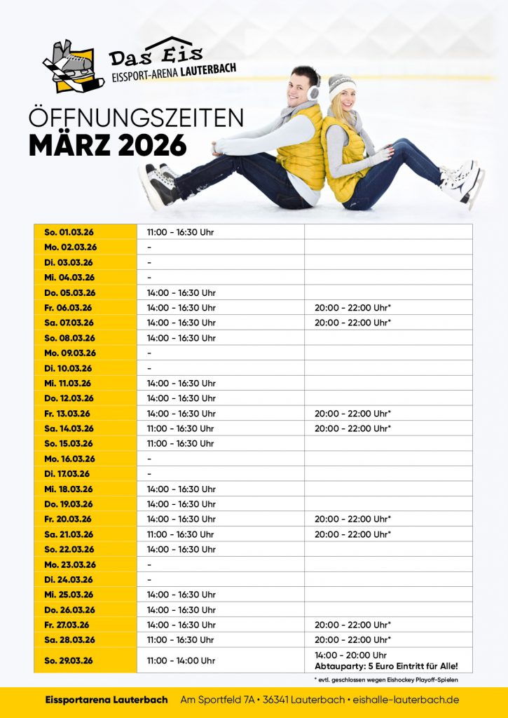 Die Eissport-Arena Lauterbach hat weiterhin regelmäßig ihre Türen für alle großen und kleinen Eislauffans geöffnet. Ob Familienausflug, sportliches Training oder gemütliches Gleiten über das Eis – wir freuen uns auf Ihren Besuch.